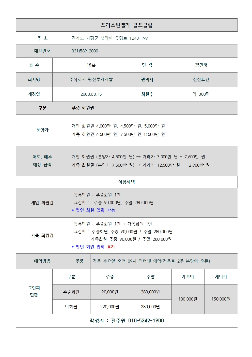 #프리스틴밸리 cc 주중 개인회원권