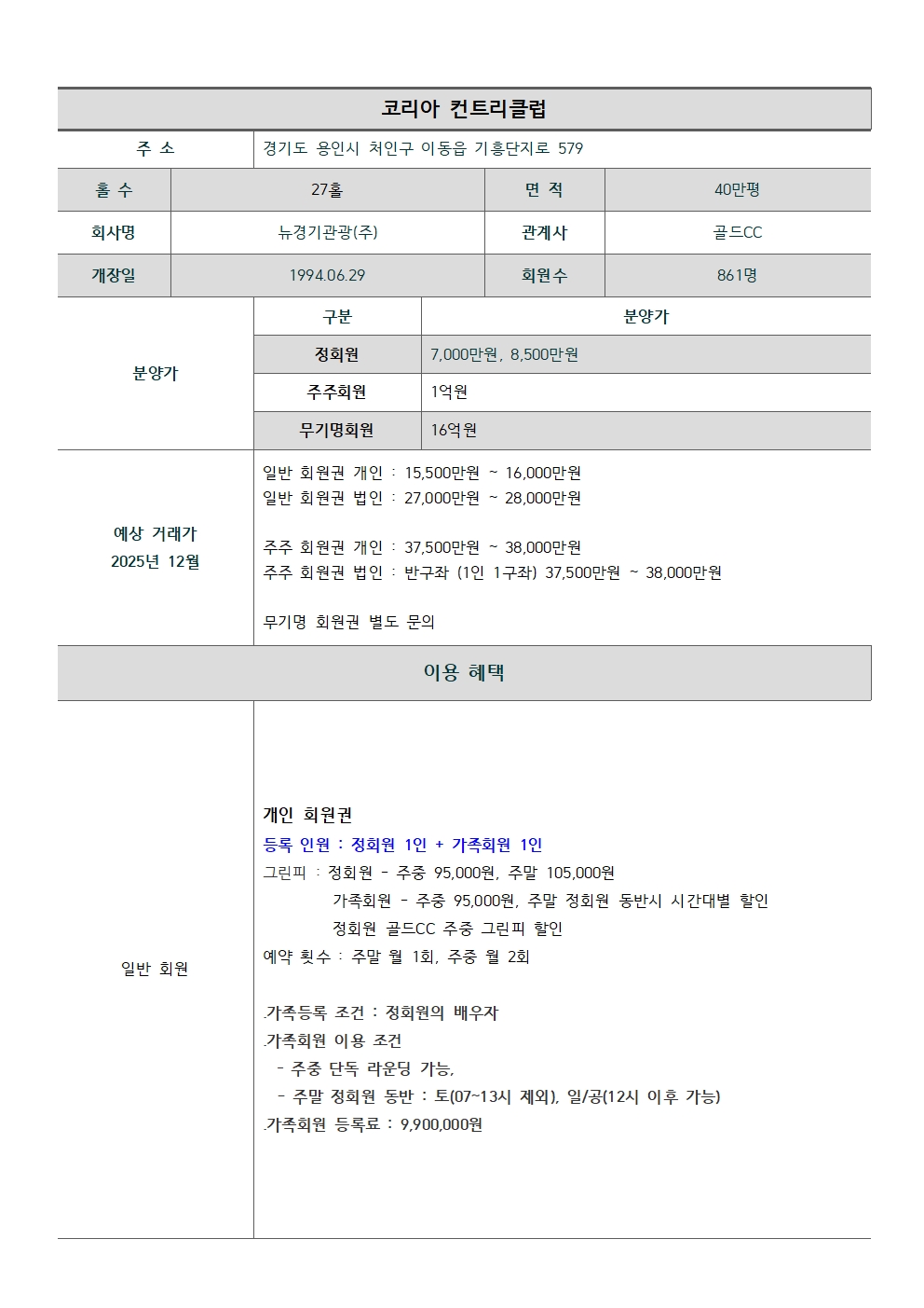 #코리아cc일반회원권 #코리아cc회원권 #코리아cc주주회원권 #코리아cc주주동반자대우