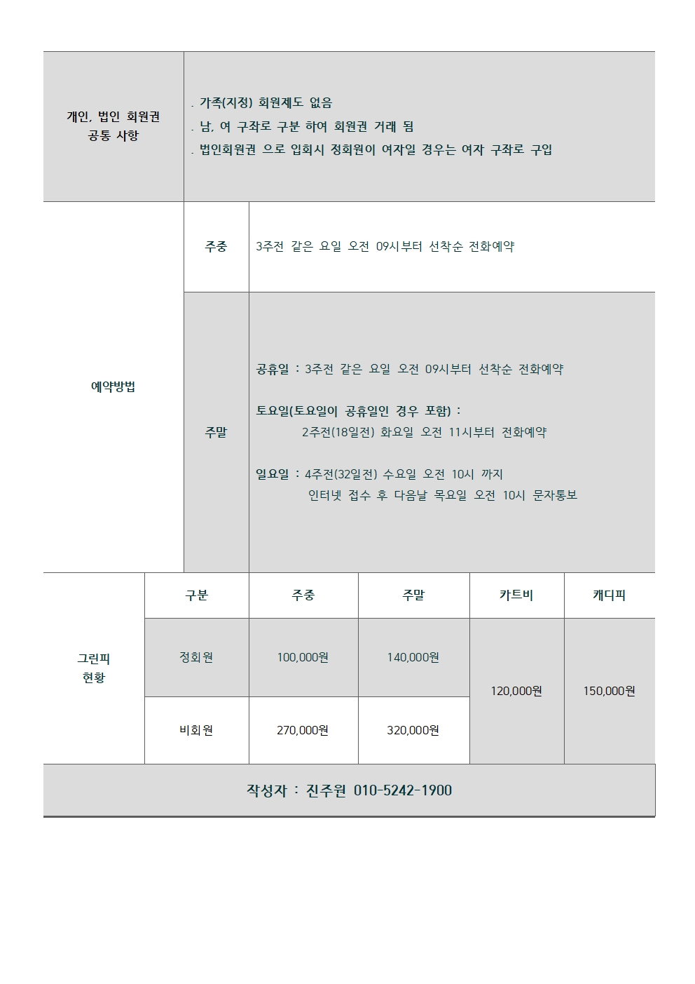 - 개인 남자 회원권 : 약 2억 9,700만 원 ~ 3억 원