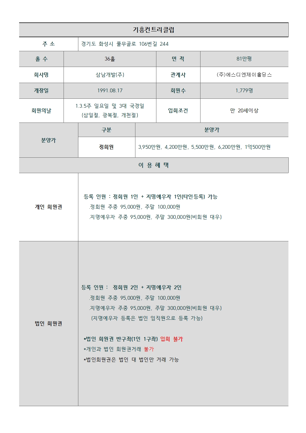 개인·법인 회원권 공통 사항입니다.